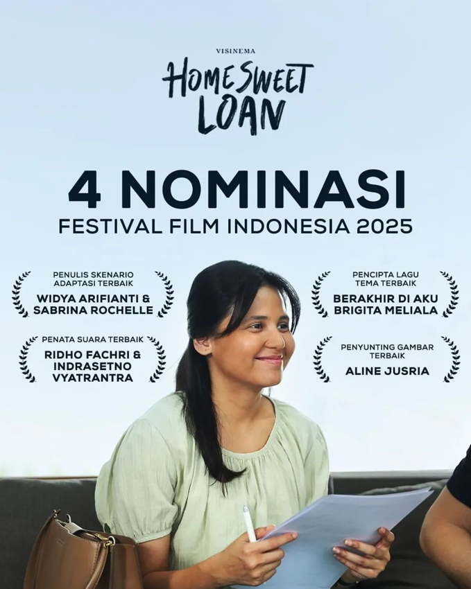 Film Visinema, ‘Home Sweet Loan’, yang diadaptasi dari novel blockbuster berjudul sama karya Almira Bastari, mencatatkan 4 nominasi di FFI 2025. Prestasi ini mengukuhkan popularitas buku Almira Bastari di layar lebar.