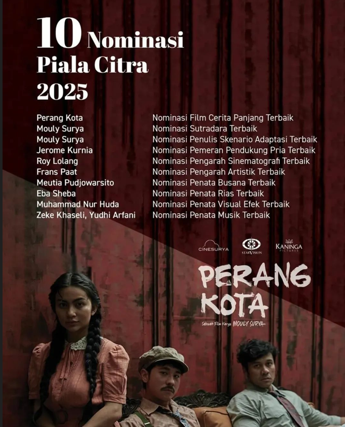 Nominasi yang diraih ‘Perang Kota’ meliputi kategori bergengsi seperti Film Cerita Panjang Terbaik, Sutradara Terbaik (Mouly Surya), dan Penata Musik Terbaik (Zeke Khaseli & Yudhi Arfani). Keterwakilan ‘Perang Kota’ di berbagai bidang menunjukkan keberhasilan dalam mentransformasi kedalaman literatur klasik ke dalam medium visual yang kuat dan memukau.